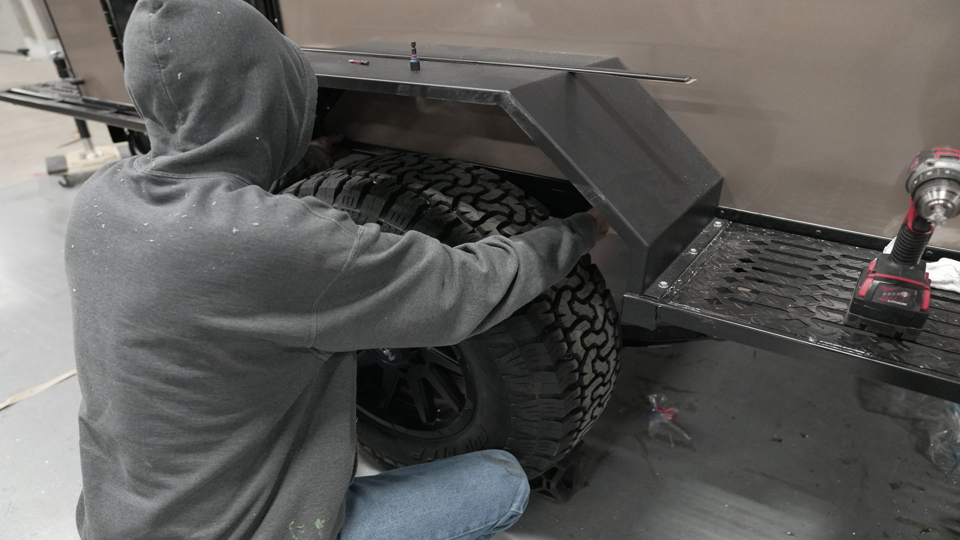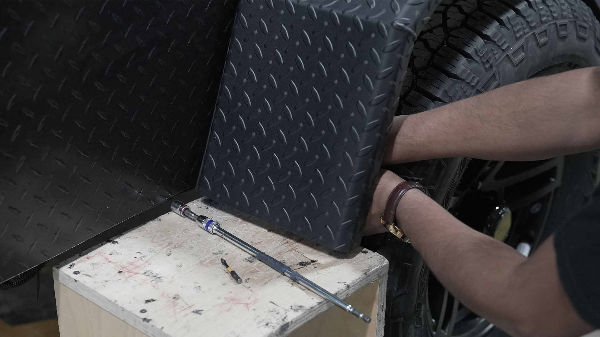 It all starts with the frame–the backbone of our trailers. Here, expert welding meets precision in fitting tires, suspension, and intricate wiring. This stage is crucial for ensuring a solid and safe base for your adventure. Every Hiker Trailer is made with a robust steel frame for maximum durability, and our suspension systems are designed to suit the unique niche of our four models.